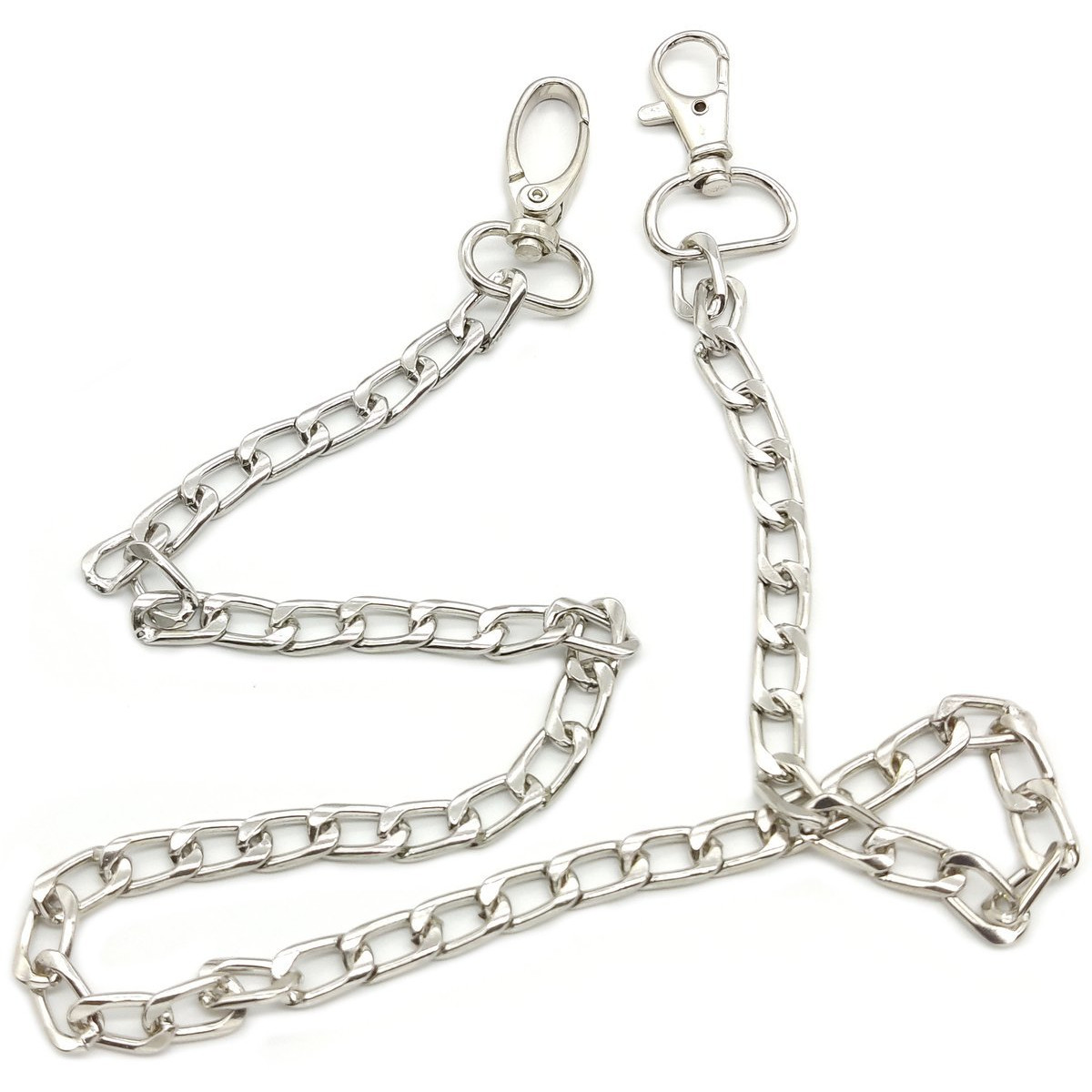 Řetěz plochý, kroucený s větším zploštělým očkem a karabinami, stříbrný